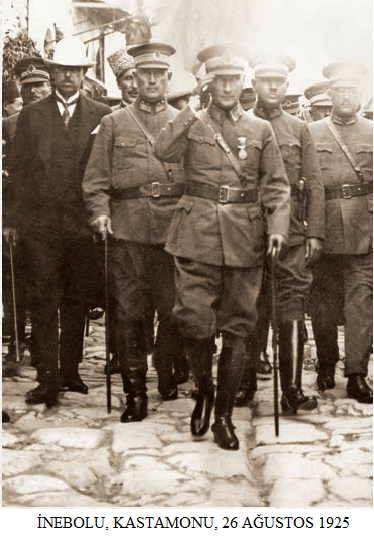 O gün öğleden sonra İnebolu’da bir deniz gezintisi yapan Atatürk, geceyi de burada geçirdikten sonra, 28 Ağustos 1925 günü sabah gümüş takım elbiseli, kravatlı ve elinde beyaz panama şapkasıyla kaldıkları evden Fuat Bulca ile inerler. Kapının önünde fotoğrafçılara poz verdikten sonra Kaymakam ve Belediye Başkanı’nın elini sıkarak İnebolu’dan ayrılırlar. Küre’de kısa bir müddet kaldıktan sonra Devrekani’ye gelirler. Burada bucak müdürleri ile görüşmeler yapış olup Devrekânili olan Kastamonu Milletvekili Mehmet Fuat Bey’in çiftliğine yemeğe geçer. Saat 18:30’da Kastamonu’ya gelir. Kışla’da toplanan halkın büyük bir bölümünün elinde şapka vardır. Otomobilinden inen Atatürk insanlarla tek tek ilgilenir.
