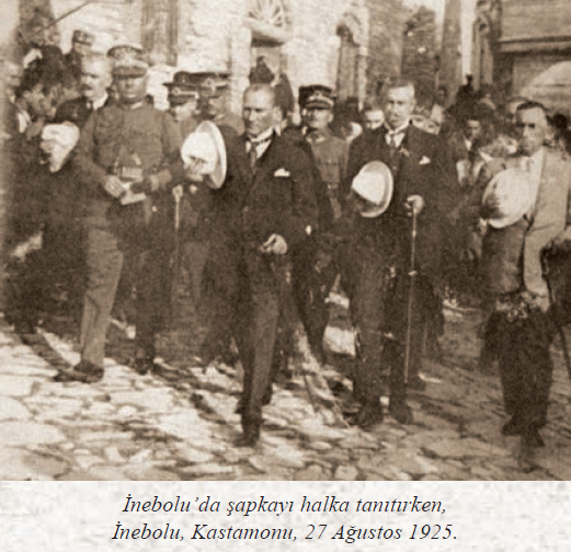 27 Ağustos 1925'te İnebolu Türk Ocağı'nda yaptığı uzun ve tarihi konuşmada, salonu dolduran topluluğa elindeki şapkayı göstererek şunları söyler:
