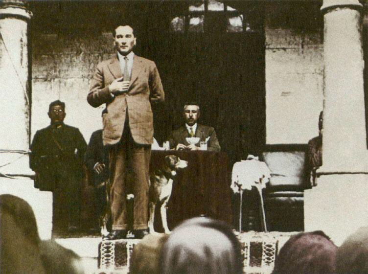 Söylevin sonunda Öğretmen Sabri, yapılan devrimde Gazi’nin yürüdüğü yoldan yürüyeceğini bildirmesi üzerine Gazi Paşa ayağa kalkarak şu sözleri söyledi: Efendiler, gösterdiğiniz kıymetli uyanış ve ufuk açıklığından çok duyguluyum. Sesim uygun değil bu nutka da izin verirseniz bir beyitle cevap vereyim: