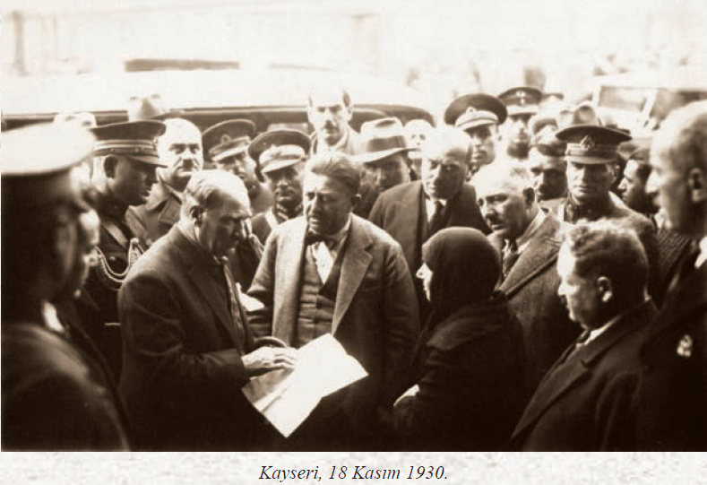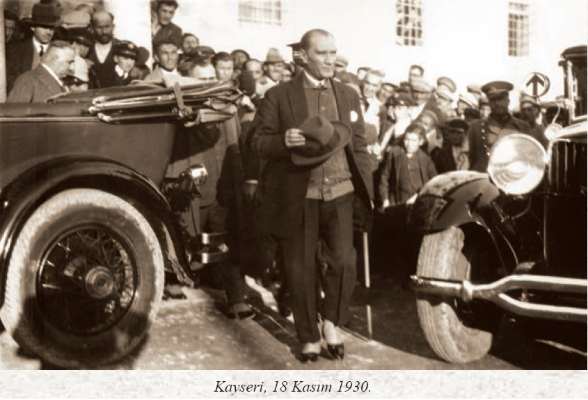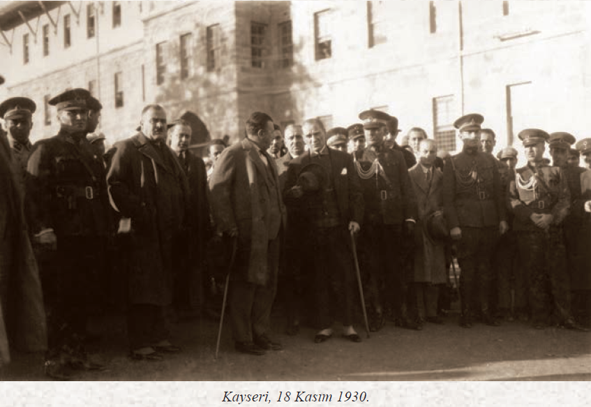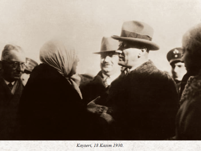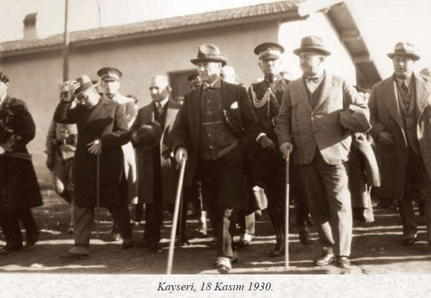 Serbest Cumhuriyet Fırkası’nın lağvından sonra, Atatürk, 17 Kasım 1930 günü uzun bir yurt gezisine çıkar. Yanında İçişleri Bakanı Şükrü (Kaya), milletvekillerinden Kılıç Ali, Salih (Bozok), Recep (Peker), Recep Zühtü, Cevat Abbas (Gürer), Falih Rıfkı (Atay), Reşit Galip, Ruşen Eşref (Ünaydın), Memduh Şevket (Esendal), Başyaver Rusuhi ve Yaverler, Özel Kalem Müdürü Hasan Riza (Soyak), Sağlık Bakanlığı Mühteşarı Hüsamettin, her bakanlıktan birer müfettiş vardır. Ankara’dan uğurlanan beyaz tren, 18 Kasım 1930 günü saat 13:15’te Kayseri İstasyonu’na girer. Kayseri heyeti, Atatürk’ü, Beydeğirmeni İstasyonu’nda karşılarlar. Atatürk o gün Hükümeti, Kolordu’yu, Belediye’yi ziyaret eder. Kayseri Lisesi’nde derslere girer. Öğrencilerle tarih ve dil konuları üzerinde konuşmalar yapar. Akşama doğru Fırka’da Kayserili’lerle görüşür, halkın derdini dinler. Geceyi trende geçiren Atatürk, ertesi günü, 19 Kasım 1930 saat 14:30'da Sivas’a doğru yola çıkar.