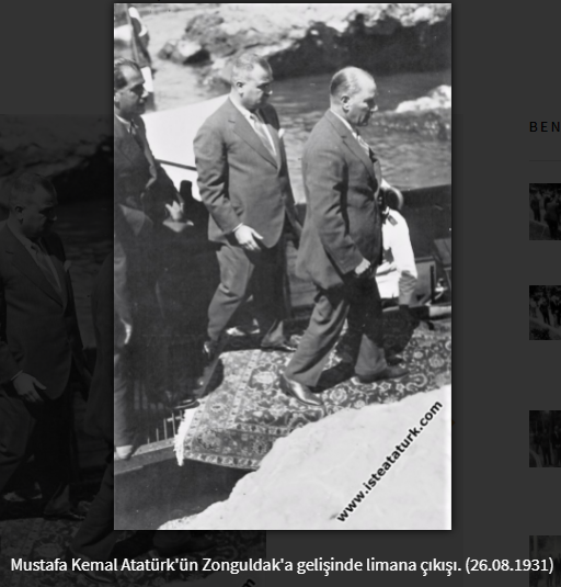 Atatürk, saat 11.30’da halılarla döşenmiş olan merdivenlerden E.K.İ’nin iç limanındaki iskelesine (şimdiki maden mühendisleri odası lokali yanı) çıkmıştır. İskelede kendisini karşılayanların içtenlikle ellerini sıkmıştır. Merdiven başında ise Ayten Basri adlı bir kız çocuğu, "Hoş geldin, Gazi babamız!” diyerek elindeki çiçek demetini takdim etmiştir. Atatürk, çiçek demetini memnuniyetle alarak küçük kızın yanağını okşamıştır.